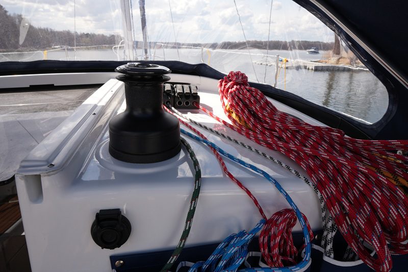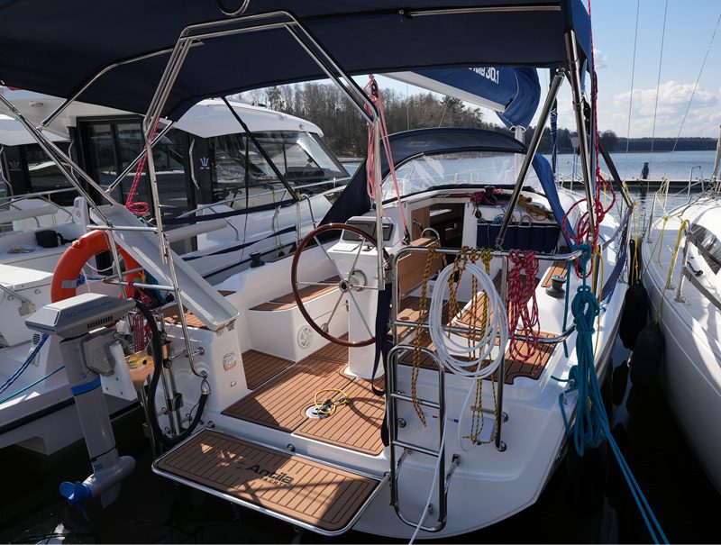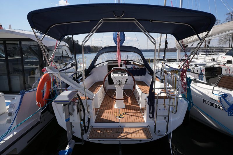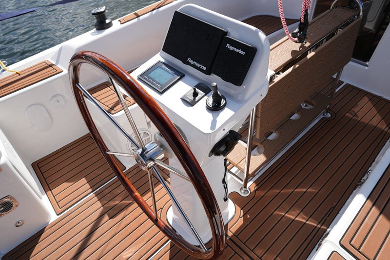 Kokpit został wykończony Iseoteakiem, który jest przyjemny w użytkowaniu i nie nagrzewa się tak jak „goły” pokład. Szprycbuda oraz pełne bimini skutecznie chronią załogę przed słońcem i deszczem, co zwiększa wygodę podczas dłuższej żeglugi.