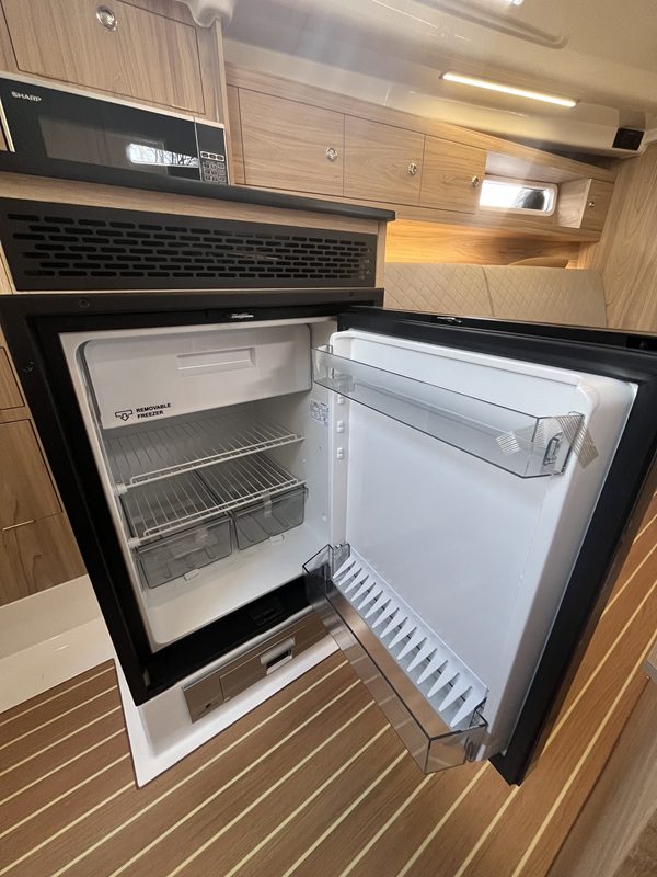 Jednostka została dodatkowo wyposażona w wbudowany odkurzacz, co w praktyce znacząco ułatwia utrzymanie porządku podczas dłuższego rejsu. To rozwiązanie bardzo rzadko spotykane w tej klasie jachtów.