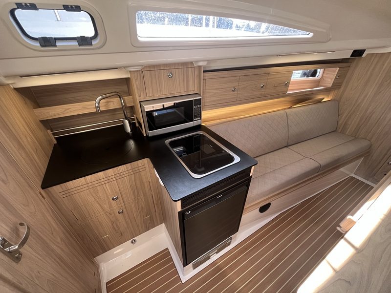 To jednostka, która łączy dobre właściwości nautyczne z funkcjonalnym, przemyślanym wnętrzem — zarówno na krótki weekendowy rejs, jak i dłuższy pobyt na wodzie.