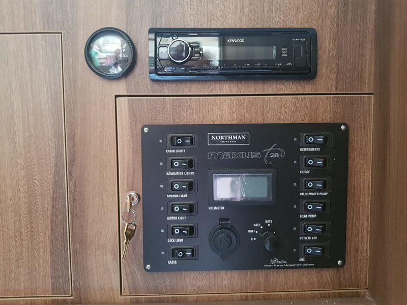 Na pokładzie znajduje się komplet wyposażenia niezbędnego do wygodnego rejsu – zarówno pod kątem części mieszkalnej, jak i bezpieczeństwa.